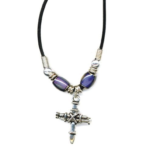 Forgiven Jewelry - Mood, This Penny Nail Christian Cross with Mood Changing Beads Choker is a Zinc Pendant with ultra sensitive / heat activated changer beads