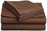 Cathay Home Luxury Soft Microfiber Sheet Set with Embroidered Pillow Cases, Queen, Chocolate